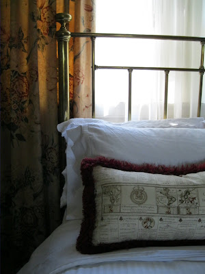 Watch the direction this decorating project takes… Start with three and a half pairs of vintage draperies, the kind of tea stained floral that inspires many of