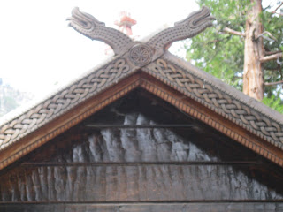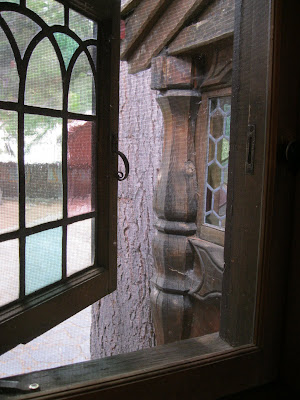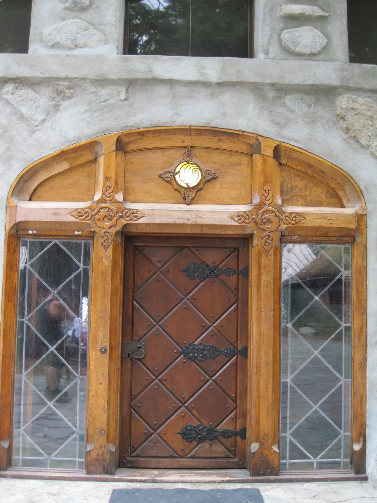The home was built by some 200 craftsmen. It was completed in about six months. The timbers were hewn by hand, metal fixtures were hand forged, and many lovely hand carvings were done right on site.