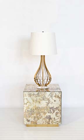 An end table that will “recede into the background” yet provide a little “glam”. It works with retro or modern interiors.
