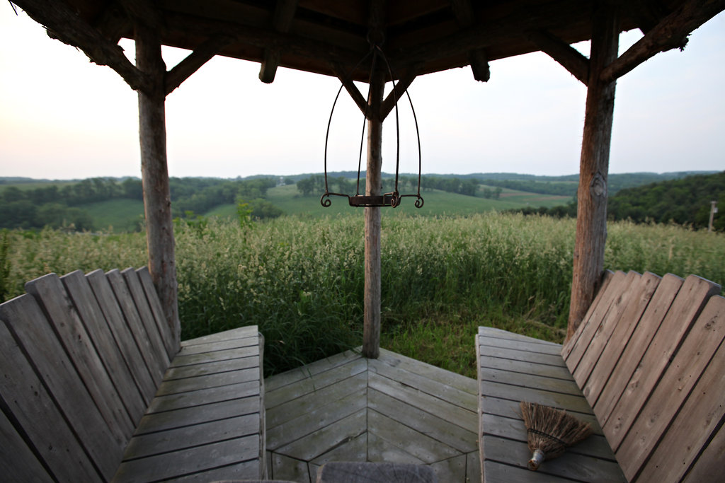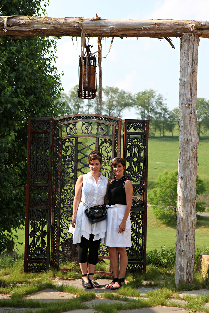 The greenhouse is used as a place for morning tea. Elements collected from estate sales, a French flea market, and a local salvage place.