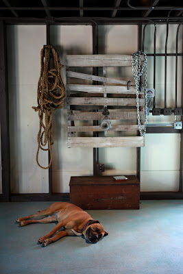 Simba, a 6 year old half mastiff takes up some floor space.