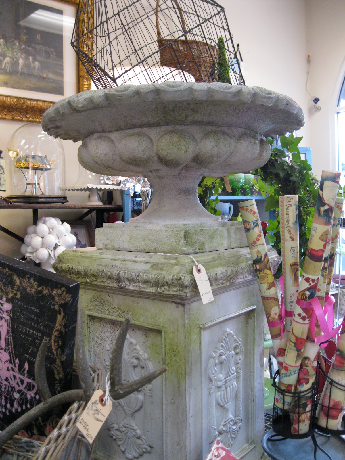 Above is a wonderful lightweight urn and plinth.  This material, believe it or not, ages quite nicely and looks just like concrete.  When these light concrete “looking” products were first being manufactured they were awful.  Not so anymore.