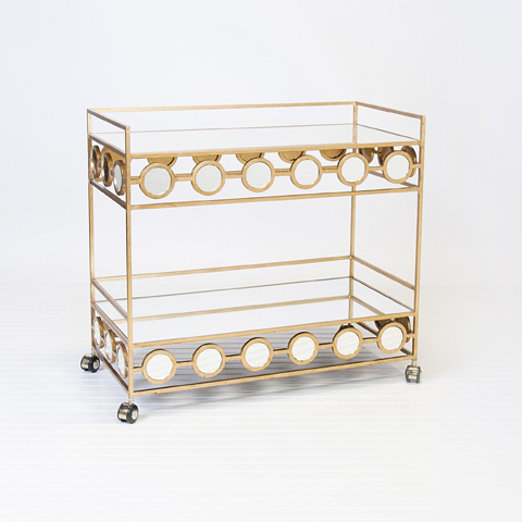 This is a cute little cart for cocktail fixings. I love to display my spirits and special glasses on trays atop carts and tables.