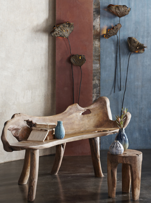 Beautiful handmade bench and matching table for a small hallway: a very organic seating option. All products available through Shiree Hanson Segerstrom, from one of my favorite, very reputable and eco-conscious vendors! If you are from California I hope you’re basking in this beautiful summer we are having.