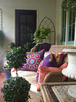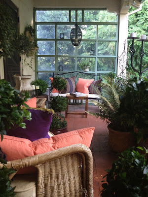 I wanted a Moroccan motif and a lot of greenery. I wanted it to feel like an oasis. I didn’t buy new furniture but I did re-purpose an iron daybed from the upper garden. I also ordered a ton of double ball ivy and rosemary triple ball topiary.