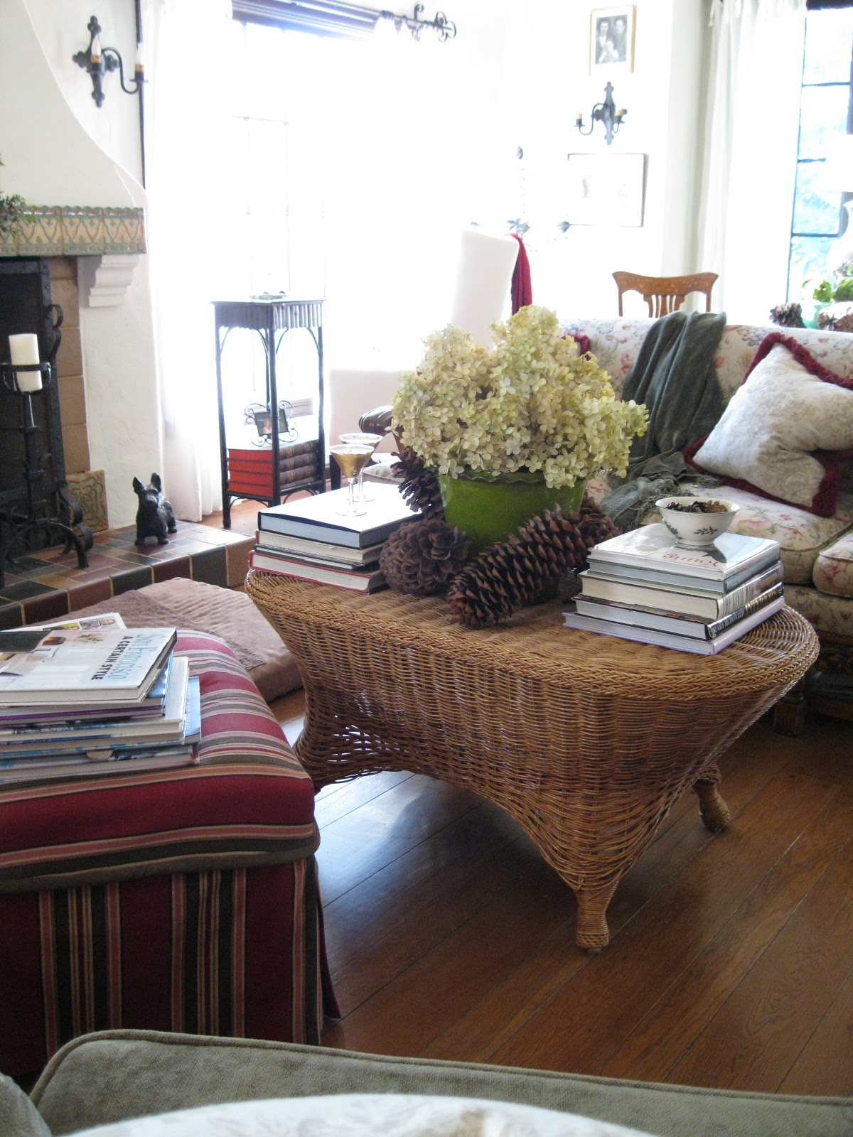 In the meantime, peruse these pictures of last year’s AAUW Christmas Home Tour. It’s my own home decorated up with my Christmas books, Spode china, pine cones, moss, and lots of fresh greenery. Enjoy.