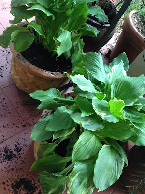 Hosta’s in pots, above, are the answer to my sun starved patio. I have been replacing plants in this one dark spot for years. I’m hoping Hosta’s will survive in that difficult place.