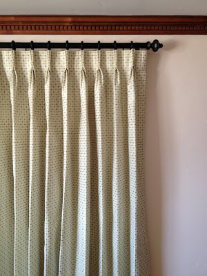 The valance is box pleated with a contrasting welt. The other two images are of pinch pleated draperies on traverse rods. Both are classic treatments in versatile fabrics. I like doing tailored window coverings. My designs aren’t always to my own taste but I find my clients are much happier if I design around their preferences rather than my own.