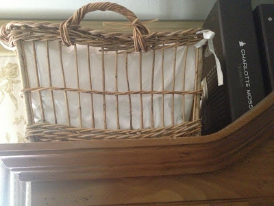 I use different types of baskets for different jobs. The one above is lined with off white muslin. Because it’s up high, I use it for storing items I don’t often need.