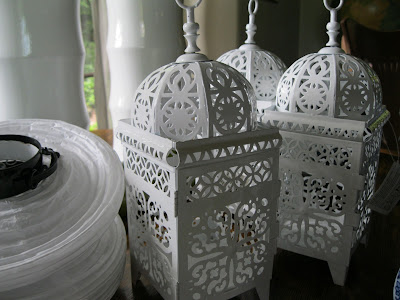 Great pierced tin lanterns from Z Gallerie. The vases are lacquered bamboo.