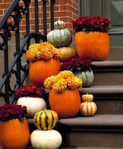 Pumpkins filled with mums on someone’s front staircase. Could it be New York perhaps?