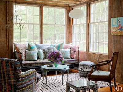 Artist Cindy Sherman’s Hampton’s home was featured recently in Architectural Digest. I fell in love with this daybed and it’s gorgeous combination of fabrics.