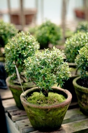 When I’m decorating with faux or fresh topiary, I like to do one large, scaled topiary in a great jardinière or pot, between a pair of interesting lamps, placed on a lovely tray or a stack of hard bound books. I also love to do topiary in pairs, particularly on the dining room table in pots that coordinate with the room.