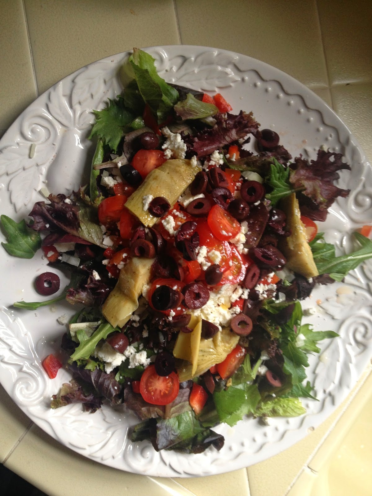 Whether I eat lunch at home or out, a big salad is my menu of choice. This one is absolutely delicious and I wanted to share it with you. All of the salads I make are a meal in one. I use a 10 inch buffet plate. No tiny salad plates for me.