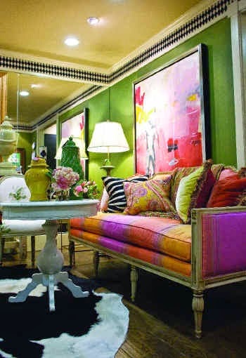 those who like prints, start with a faded floral fabric on your sofa; add two