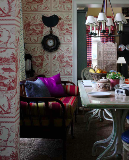 it’s a windowless, jewel box of a powder room with red lacquered walls or a