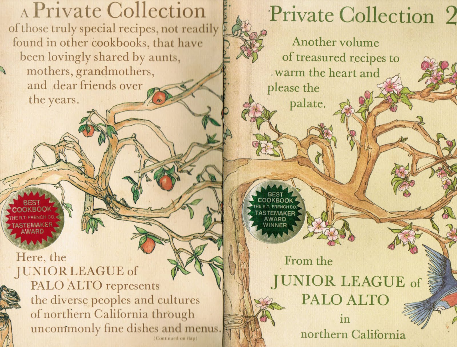 Two of my absolute favorites are the Silver Palate Cookbook and A Private Collection from the Junior League of Palo Alto. Not only do these cookbooks bring back many poignant memories for me (losing a beloved spouse seems to have made this admitted sentimental fool even more sentimental), but the recipes within the books are outstanding.