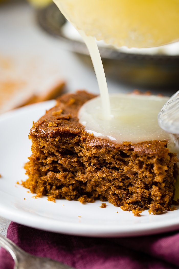 Many people think of gingerbread as cookies, but this is actually a very flavorful, moist cake simply baked in 9-inch square baking pan. The sauce is to die for. These are old classics, and they don’t disappoint.